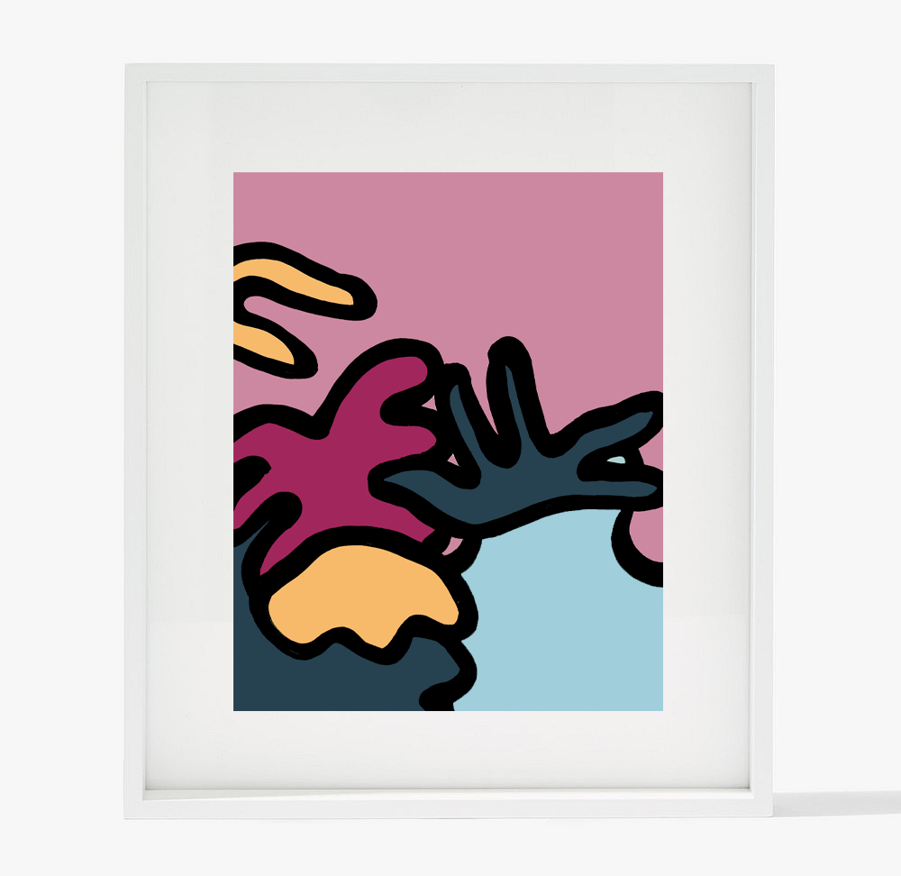 Each work is displayed within a contemporary box frame featuring a slim, rectangular profile, mount board and glass front, creating a modern edge to the distinctly hand-crafted charm.