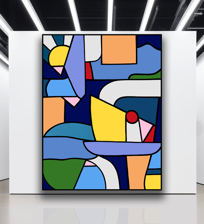 "Isle" (170cm x 170cm): Its bold and bright composition acts as a visual anchor, grounding the space in a narrative of innovation and artistic vision.