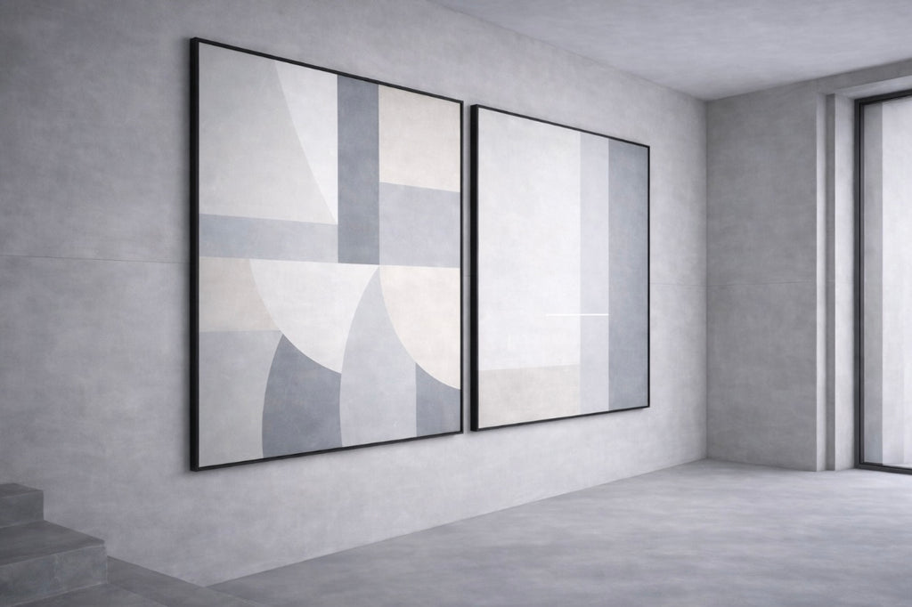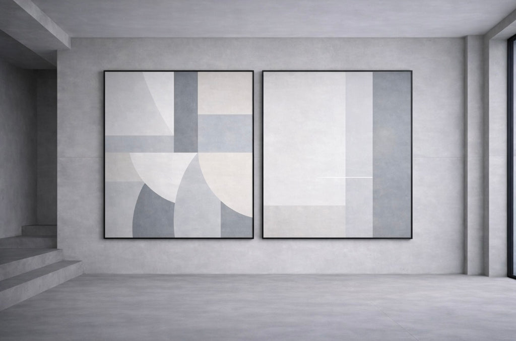 Presented as a diptych, the works create a measured pause between surfaces — allowing structure and space to operate together.