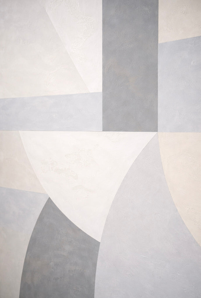 A restrained palette of mineral whites and stone greys emphasises the material presence of the surface while maintaining the calm architectural language central to Composed Abstraction™.