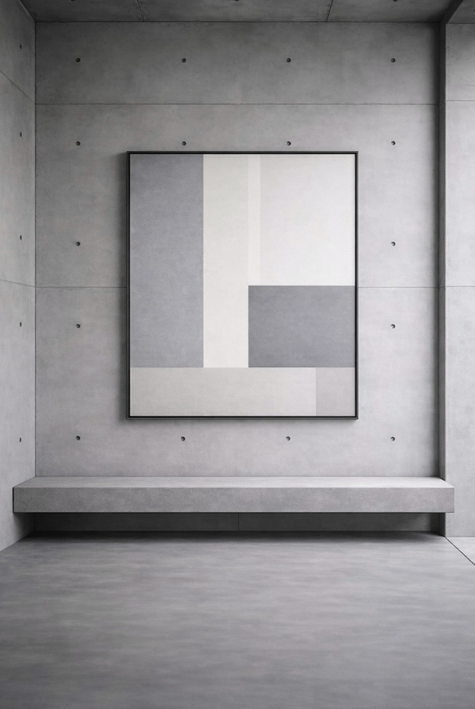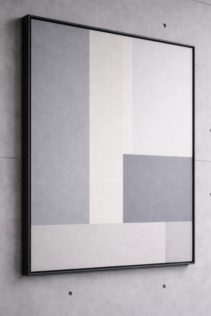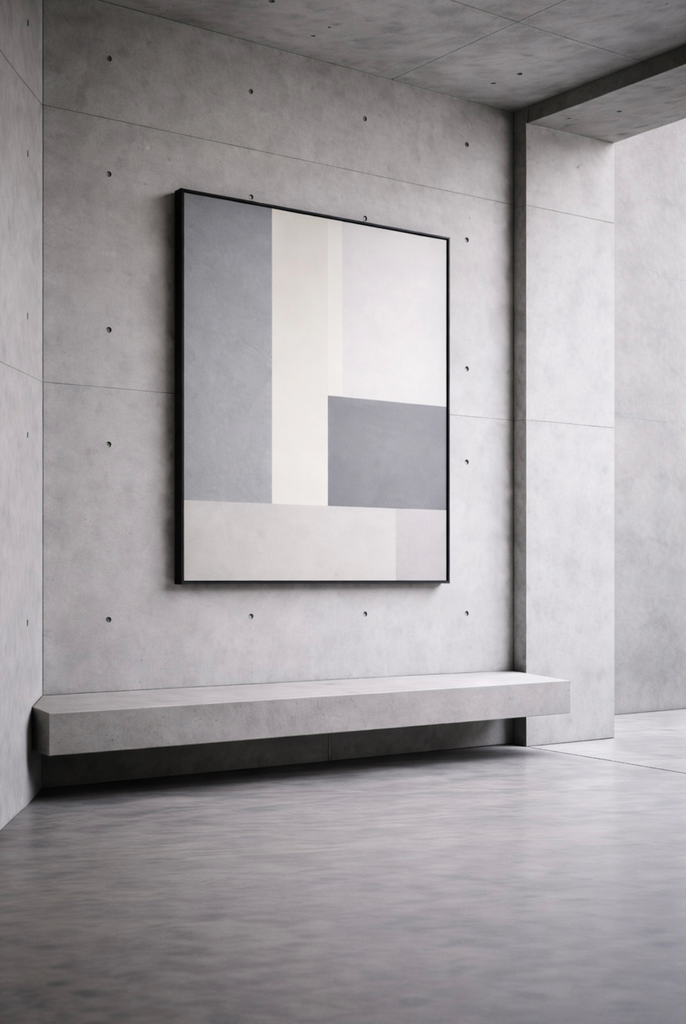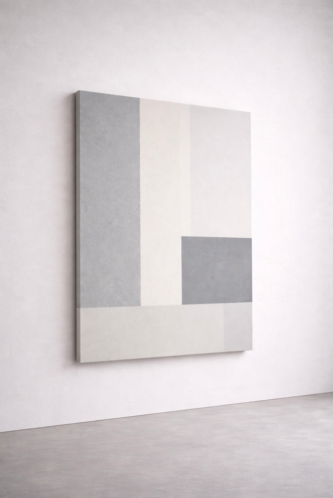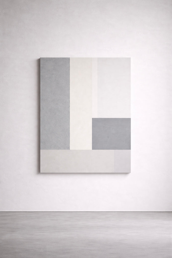 The mineral ground produces a matte, diffused surface, allowing light to settle rather than reflect. The work is resolved through proportion, alignment, and restraint.