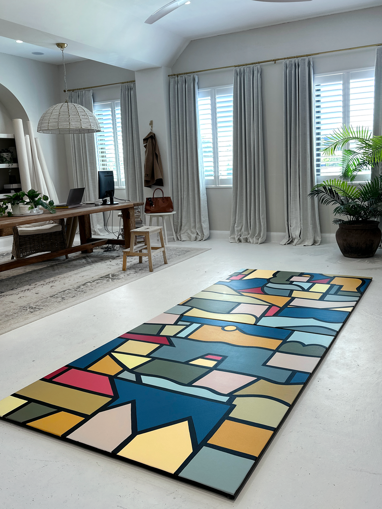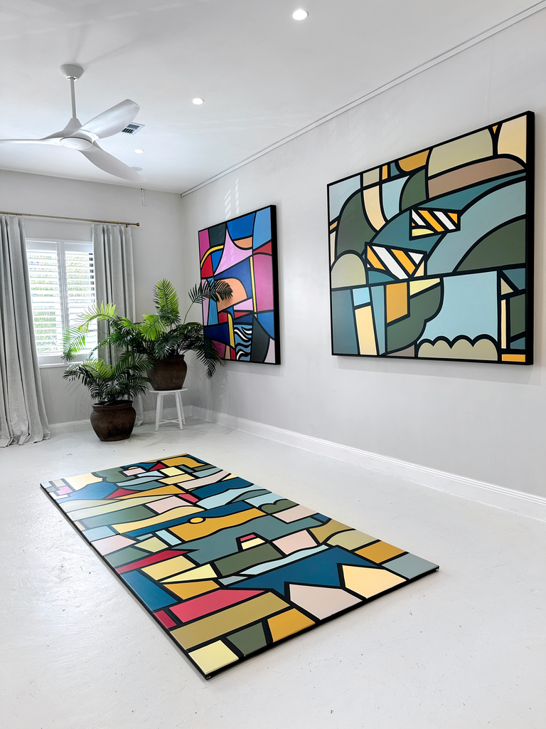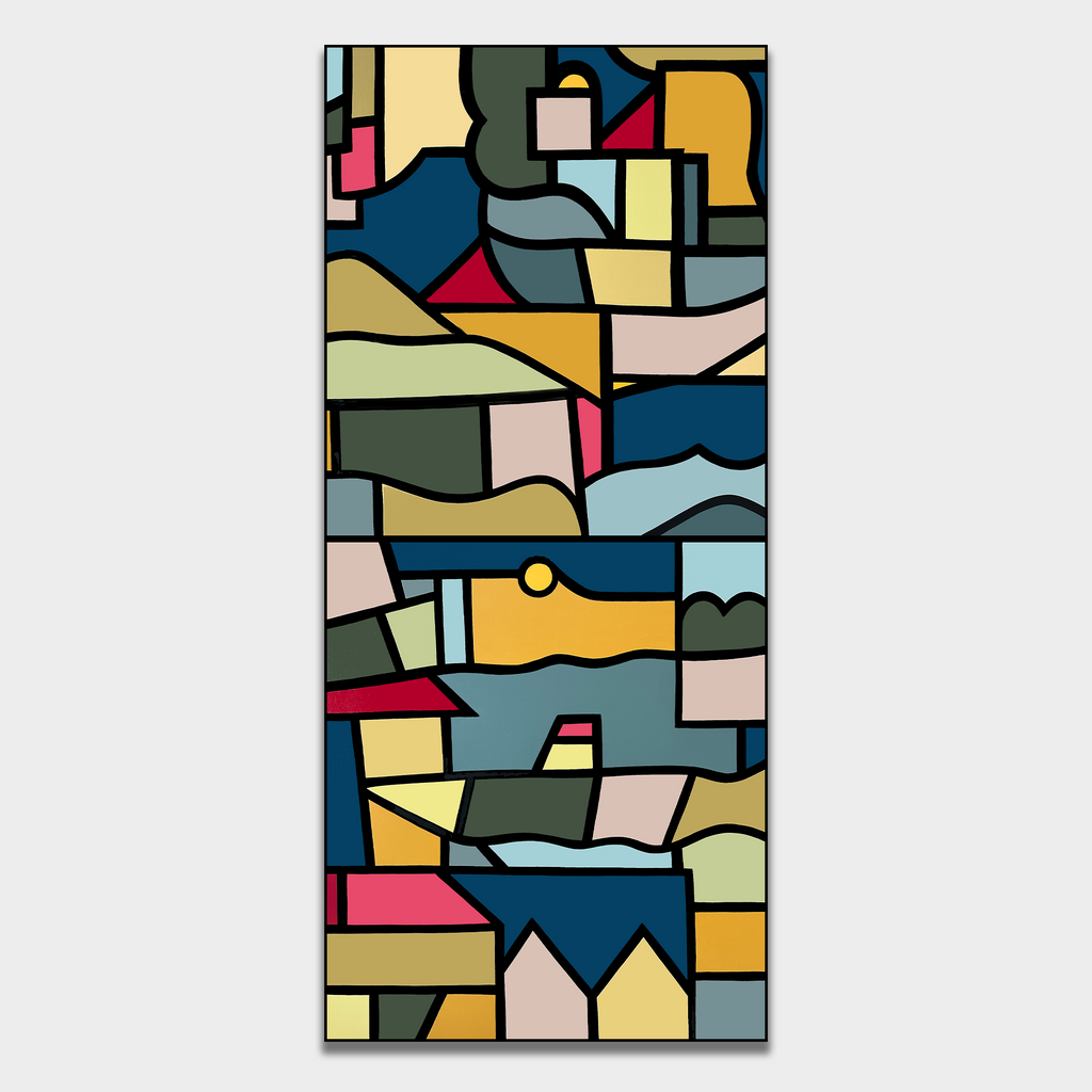 Horizon extends the compositional language of hard-edge abstraction into a linear, landscape-inspired form.