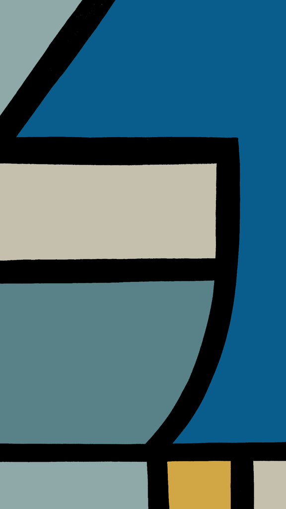 Palette: Ultramarine, muted sand, stone grey, ochre, and mineral blue — a maritime stillness defined by depth, light, and calm.