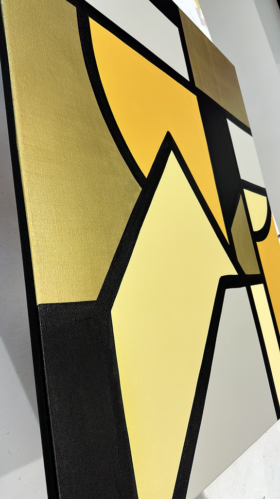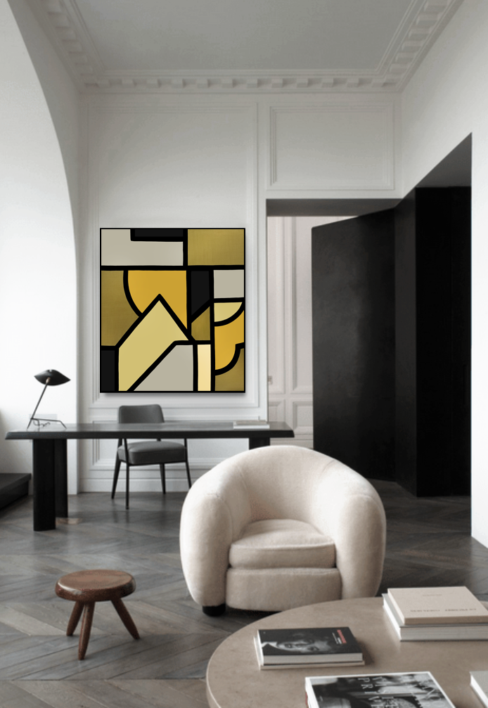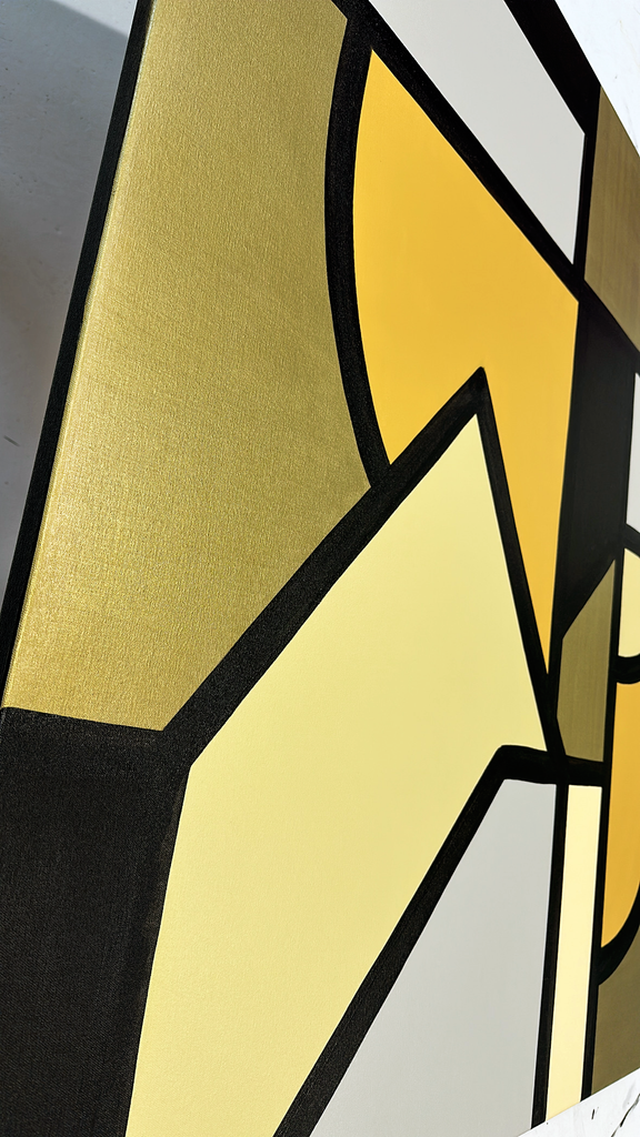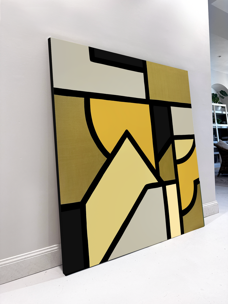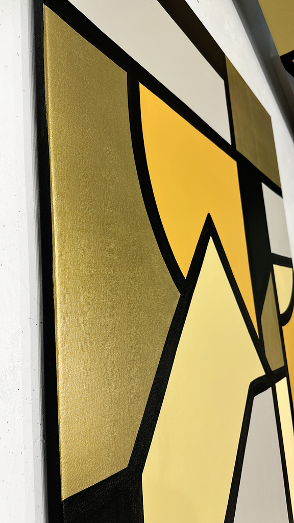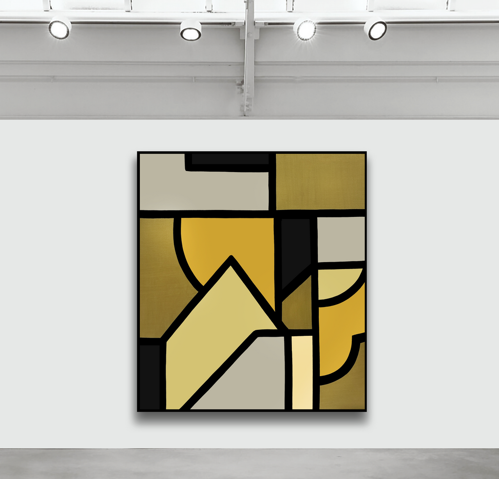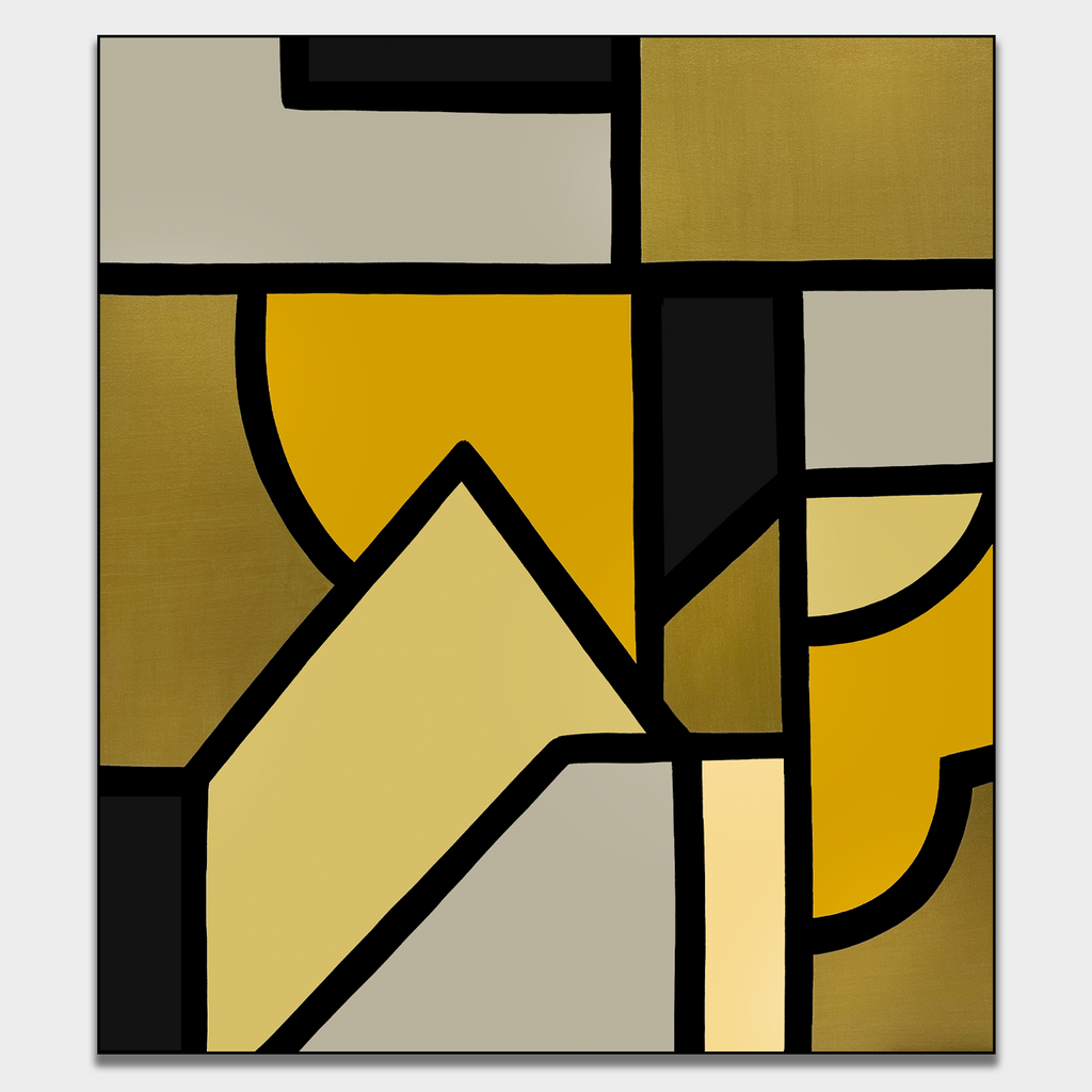 Lumen (2025) explores the architecture of illumination — a study in balance, warmth, and reflection. Through interlocking planes of gold, ochre, and slate, light becomes structure, and geometry takes on a quiet radiance. This work captures the essence of Composed Abstraction™: restraint shaped into harmony, luminosity distilled into form.