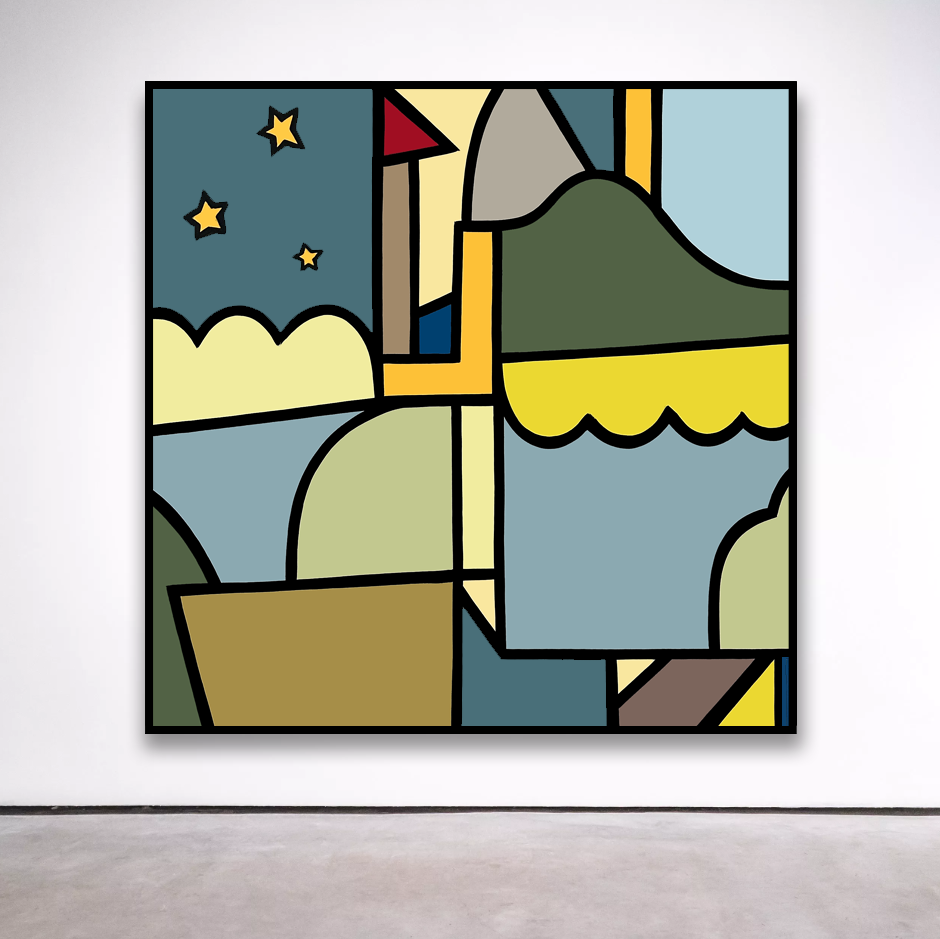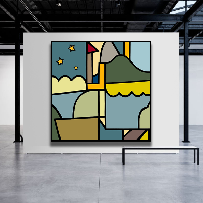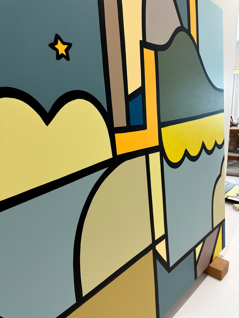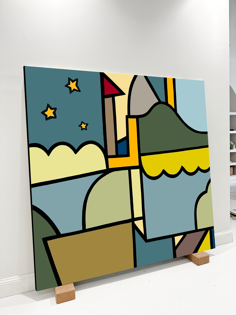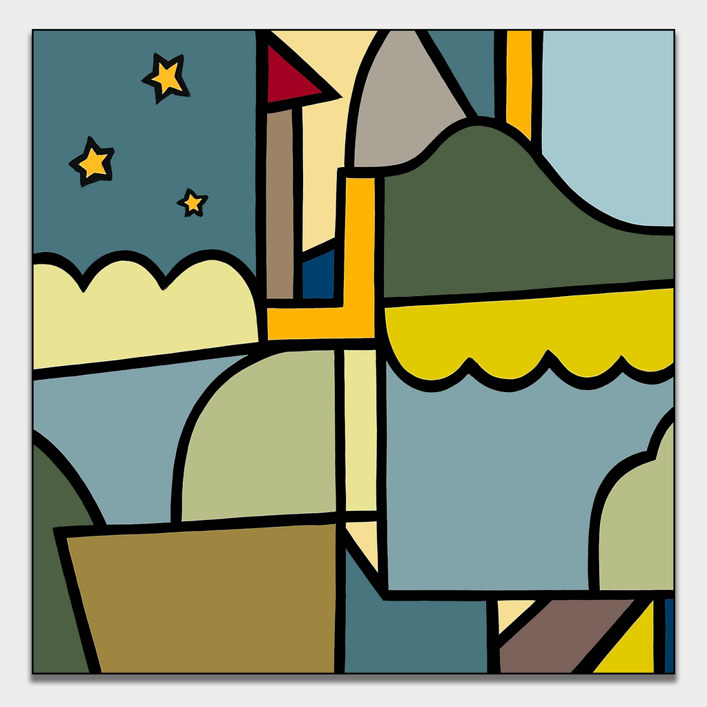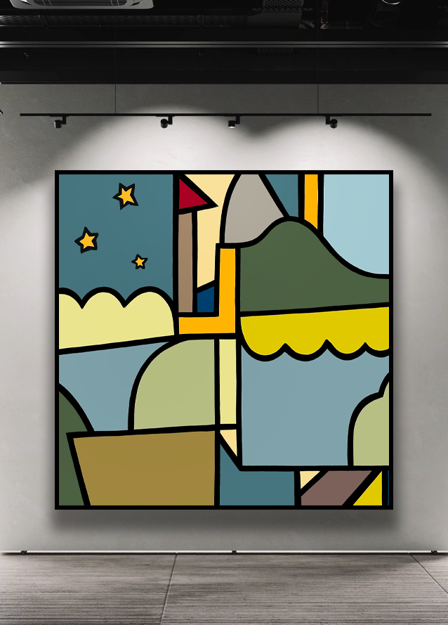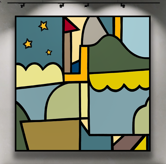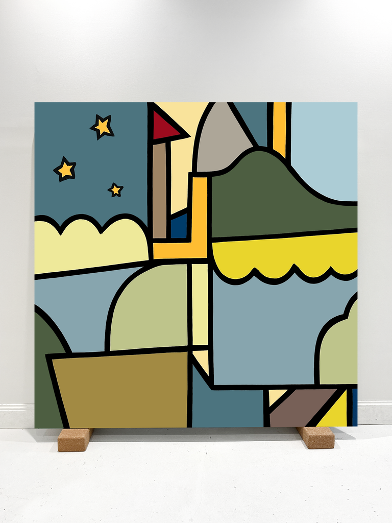 Vesper (2025) extends the contemplative language of Solace, offering a lyrical counterpoint — dusk to its dawn. Through geometric harmony and softened edges, the composition evokes the quiet ascent of evening: a moment between reflection and renewal. The work captures the hush of transition — architectural yet tender — where form steadies light and emotion rests in structure.