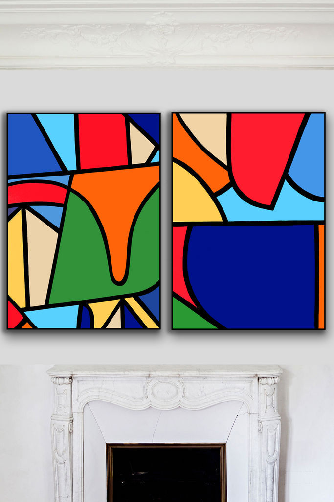 Original hard-edged, modern, geometric, abstract painting on canvas by Joanna Wolthuizen, 2023.