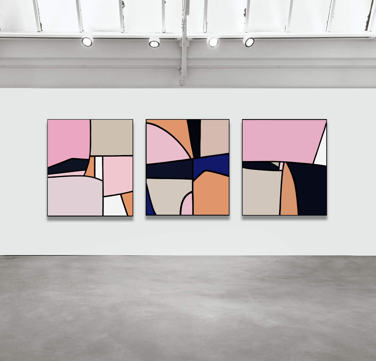 Three original paintings on canvas by Joanna Wolthuizen, 2023.