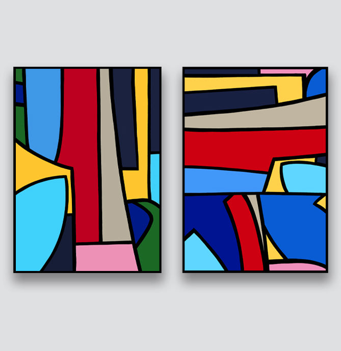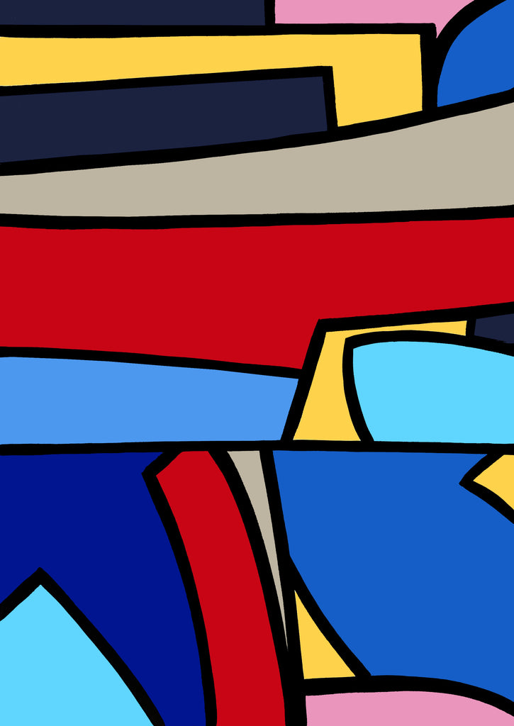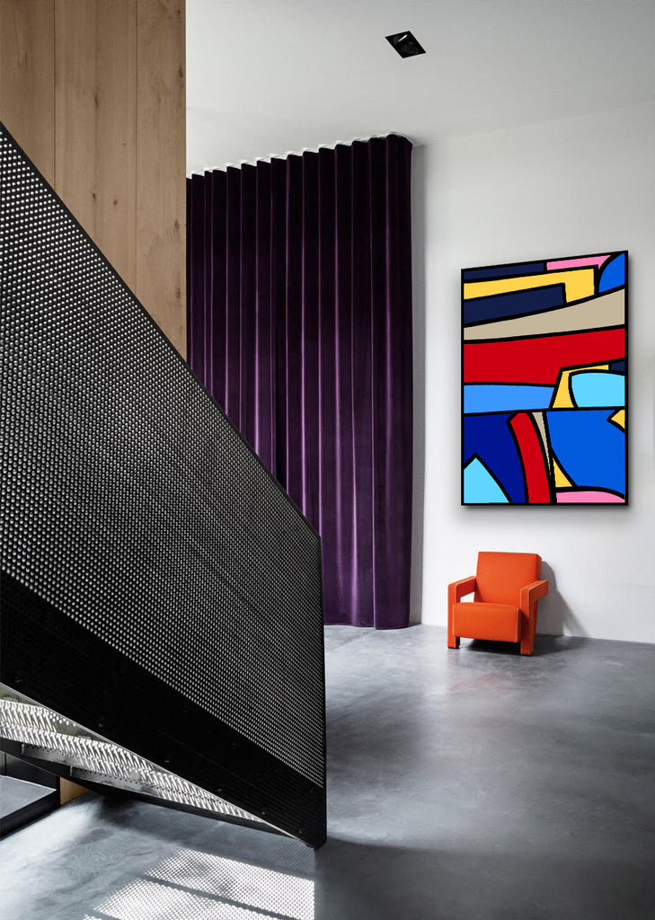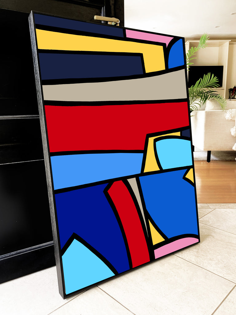 Original hard-edged, modern, geometric, abstract landscape painting on canvas by Joanna Wolthuizen, 2022.